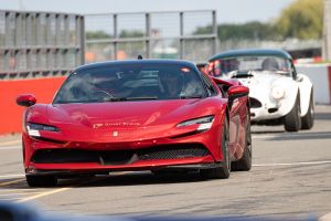 The SF90 whilst a road car impressed upon those passengering with Paul. Rob Quail, owner of Trackerfit remarked: “The event was much bigger than expected with what looked like hundreds if not thousands of supercars lined up together. Nice to see people out at events like this after the Covid situation. The Ferrari SF90 looked immaculate and was a real treat to go out as a passenger. Paul overtook everything on the 6 laps, very good driver and felt completely safe. Think I smiled all the way home. It was that good!”.