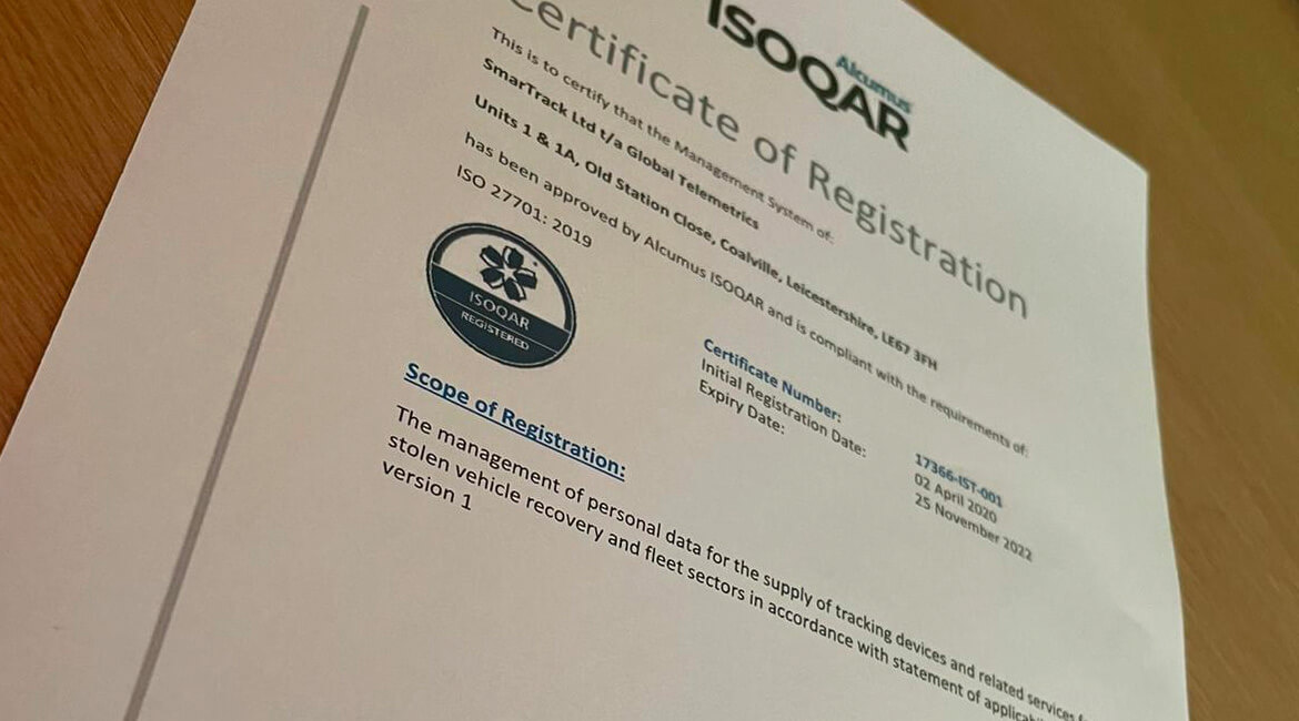 Gavin Hennessy, Operations Manager at Global Telemetrics explains why these accreditations are so important. He said: “Data protection is so important, especially in this highly digitalised and post-GDPR world. Our role as vehicle security experts means we receive a huge amount of information about our customers and their vehicle’s movements. It is imperative that we protect this information, and control and process it in the correct way. The latest accreditations that we have proudly achieved will provide both new and existing customers with the assurance that we have gone above and beyond to protect data, and this will also give us a vital edge over our competitors.”