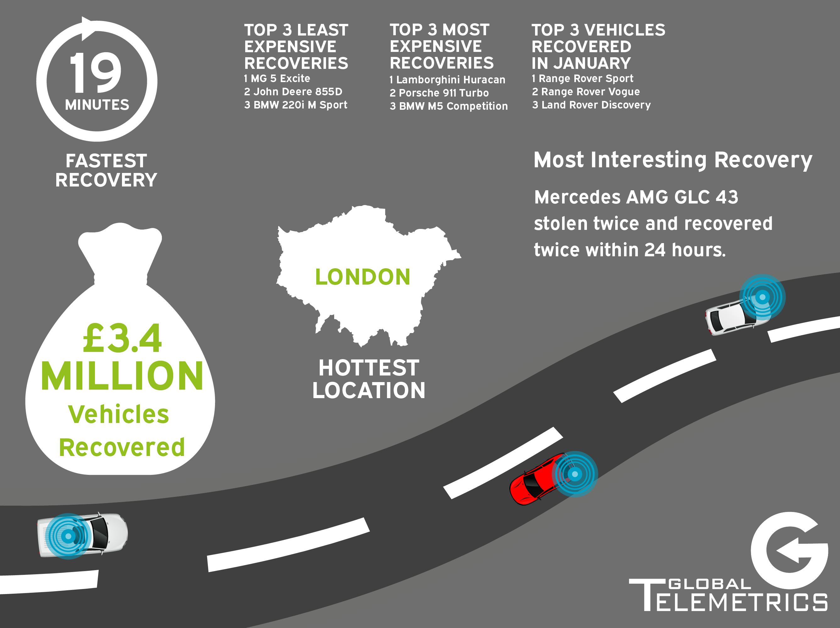 Global Telemetrics has had a kick start to the year, with £3.4m worth of vehicles recovered during January alone.