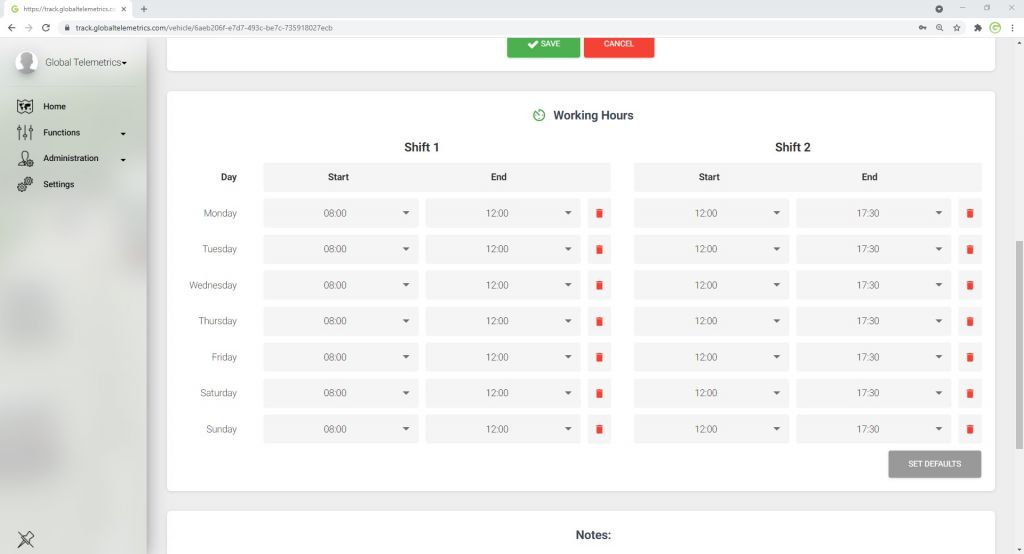 An option to view data and mileage for selectable times to help employees drive their vehicles outside of working hours.