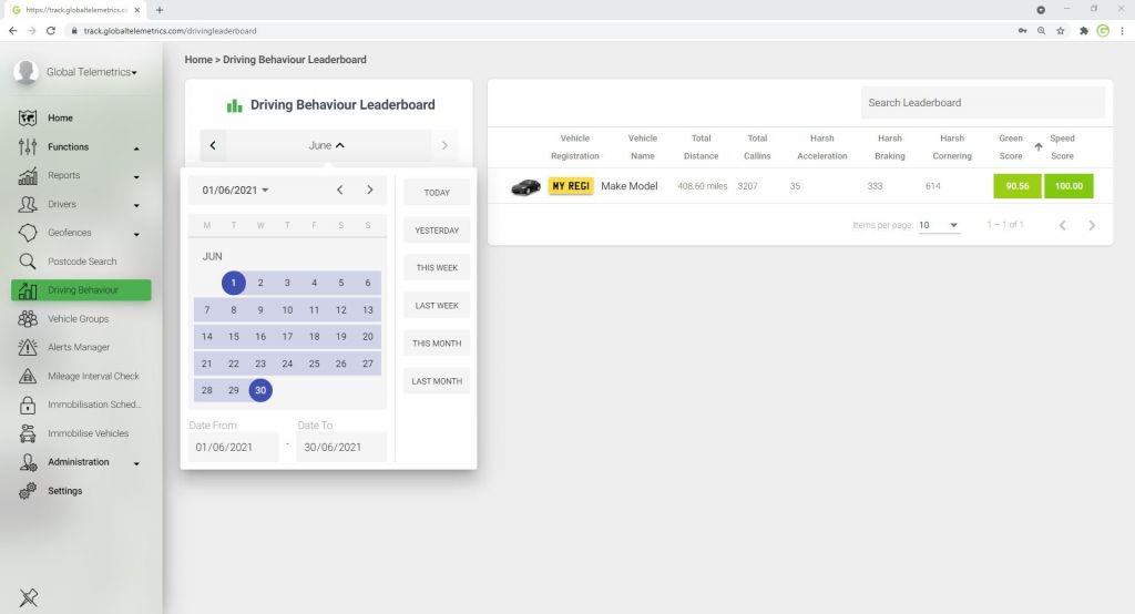 If you lease or rent out a vehicle, this feature helps you understand how the vehicle is being driven and produces information on harsh braking, harsh cornering, and speeding. This will then send you a report daily, weekly, or monthly displaying easy to understand data and giving you a driving rating marked out of 100.