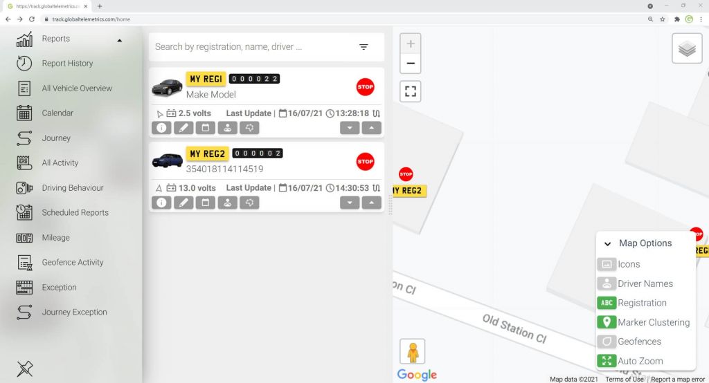 A lot of our tracking systems have the ability to send data through to an online account offering up-to-date location information of the location of your vehicle(s).