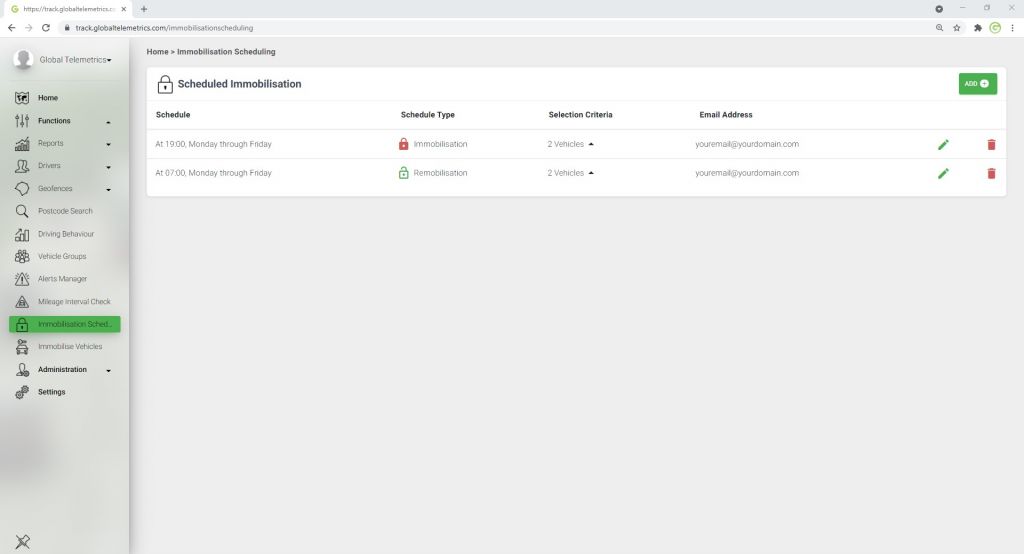 The immobilisation option would need to be requested at the time of purchase. This enables a button within the online account allowing you to immobilise/mobilise your vehicle.