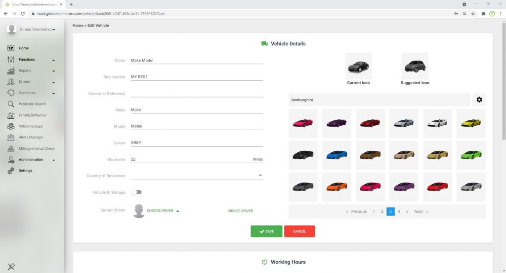 Select your vehicle icon and colour or, if you prefer, something different to help distinguish certain vehicles through your account.